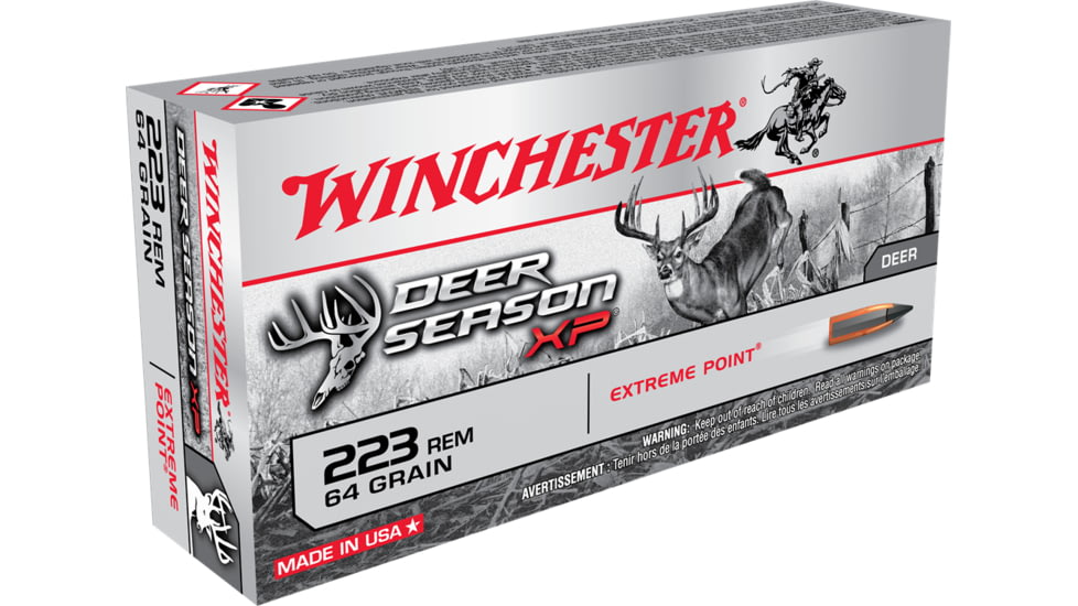 Deer Season XP combines decades of Winchester experience into the perfect choice for deer hunting Ammunition 223 Remington. Accuracy, combined with massive bullet impact performance means that Deer Season XP is a great choice for all deer hunters. The large diameter polymer tip accelerates bullet expansion for rapid trauma upon impact, while the streamlined ballistic profile optimizes the bullet’s downrange performance. This load was built specifically for deer hunting and taking down big bucks.